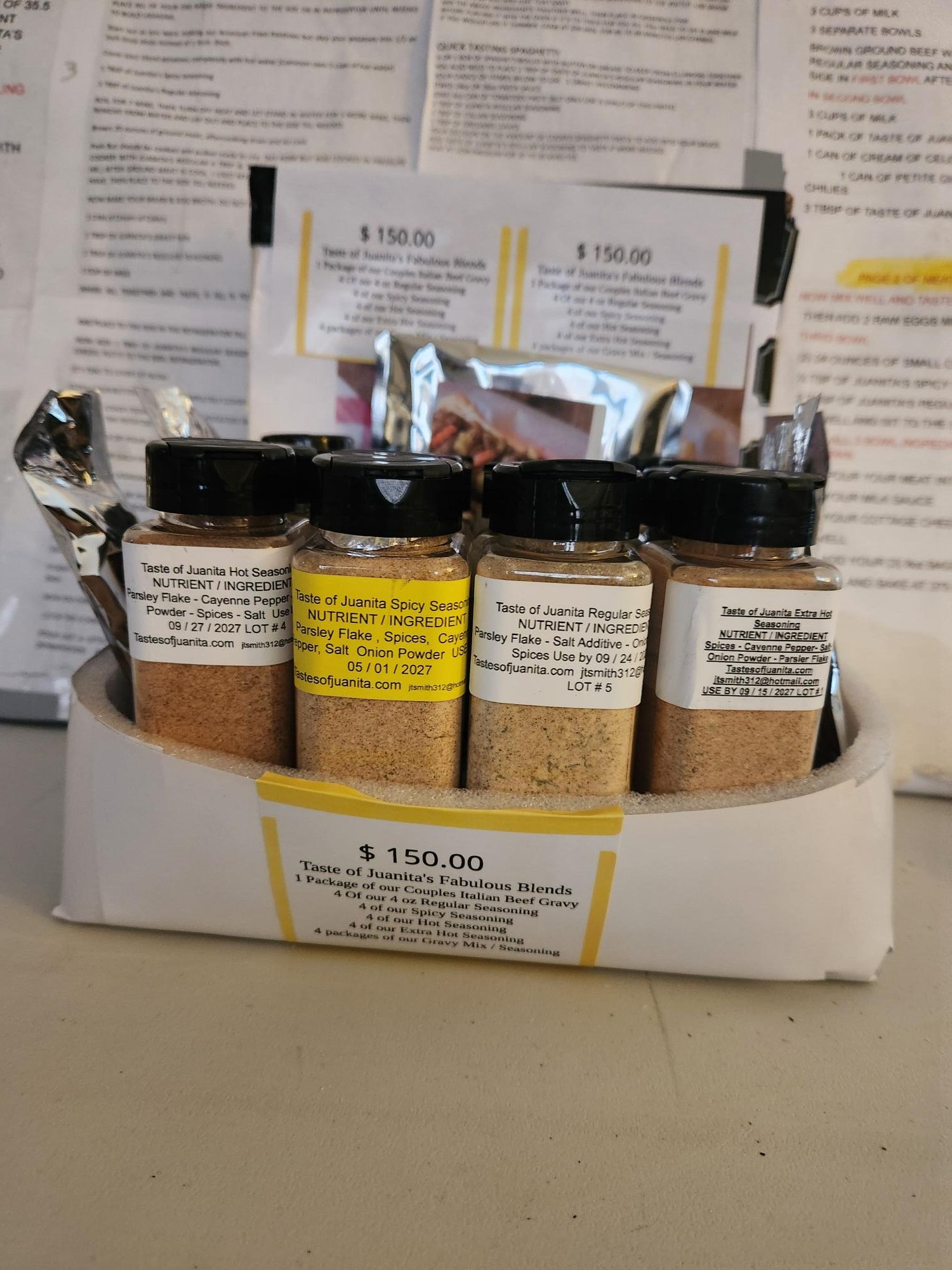 FOR A MORE PERSONALIZED ORDER PLEASE CONTACT OR EMAIL US @ 601-347-5178 / INFO@TASTESOFJUANITA.COM